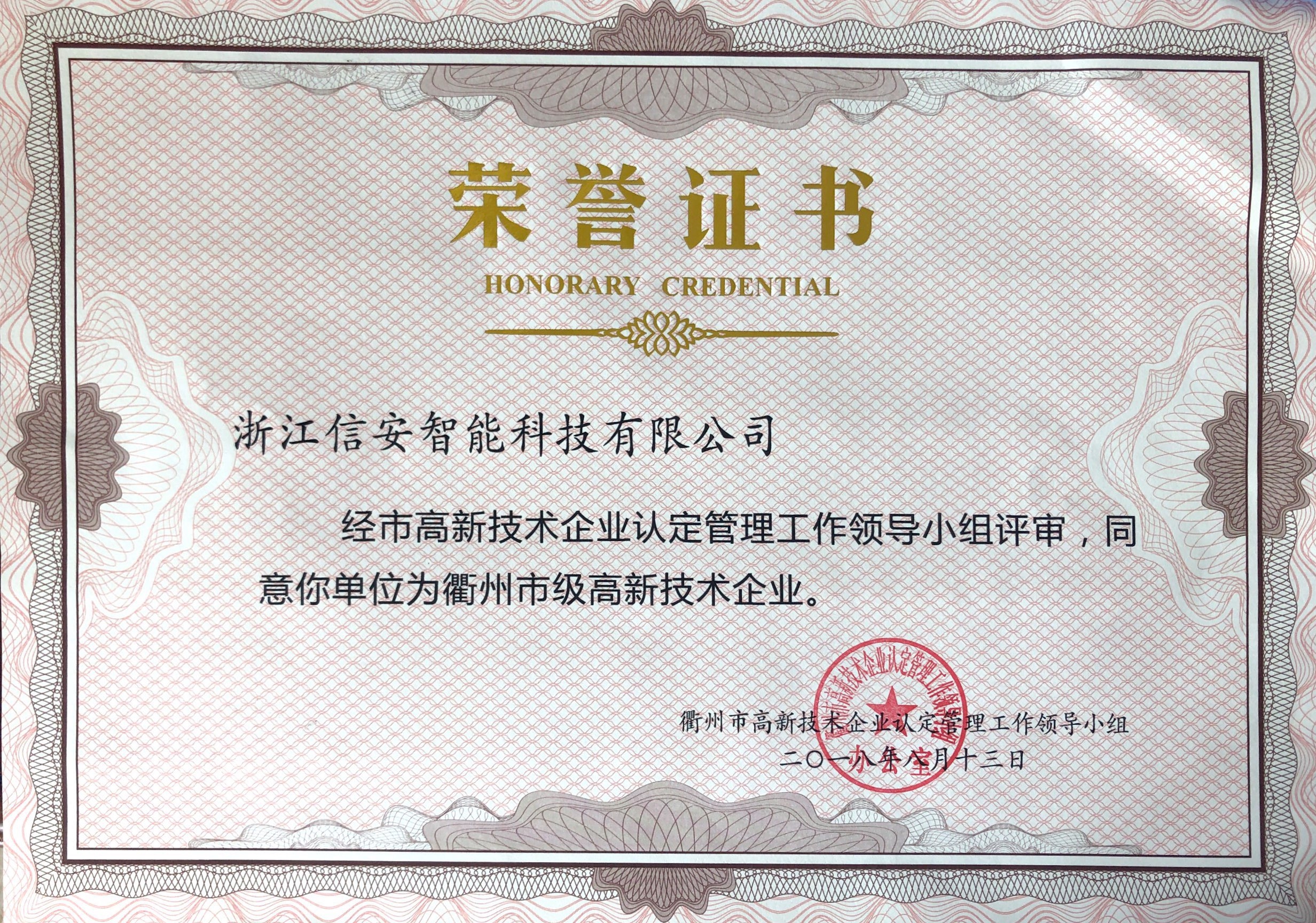- 2025-1-6恭喜信安獲得“浙江省創新型中小企業”榮譽證書